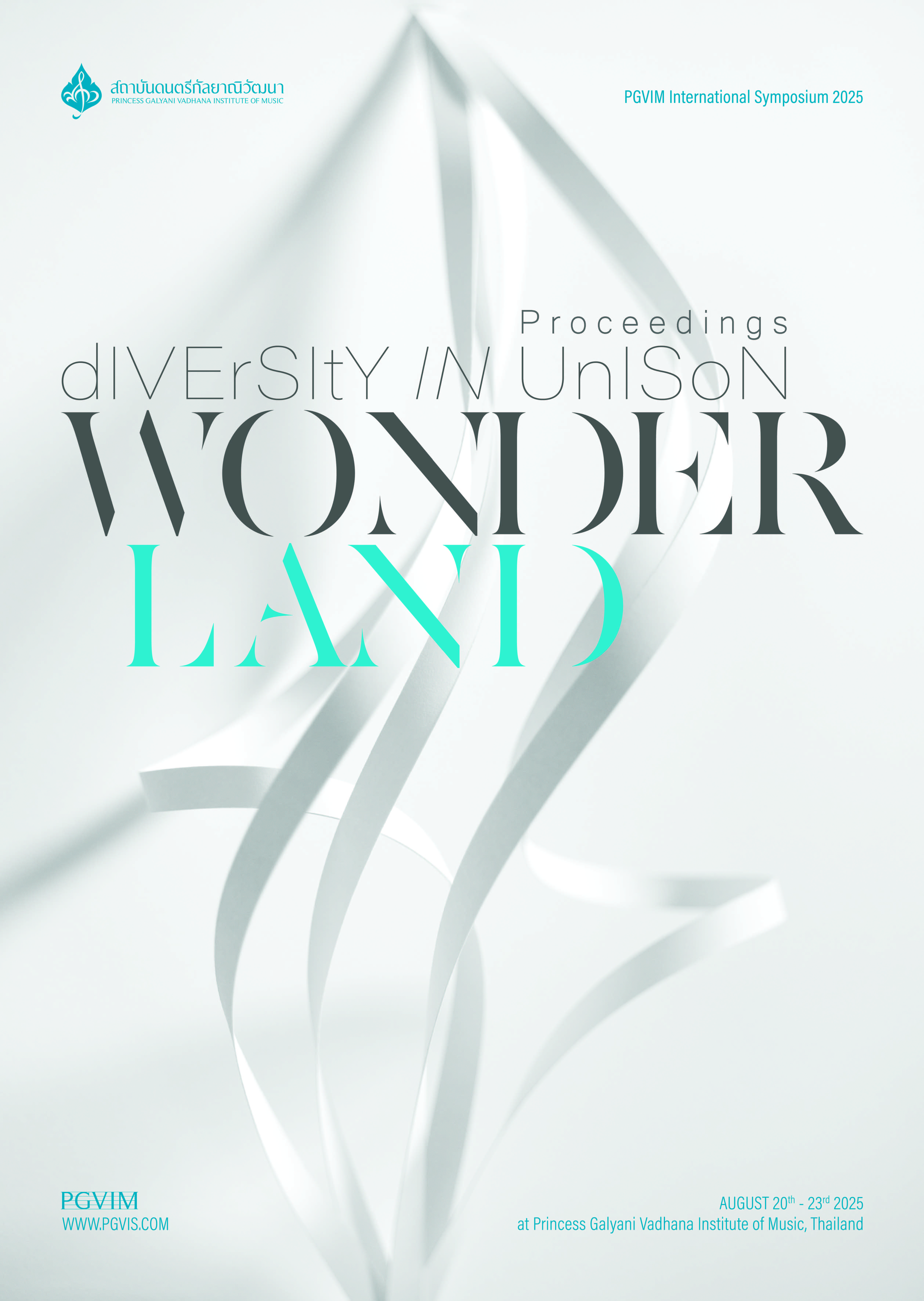 Vol. 1 No. 1 (2025)PGVIM International Symposium 2025 "Diversity in Unison: Wonderland"Drawing inspiration from Lewis Carroll's "Alice in Wonderland"—a tale of transformation, curiosity, and navigating unfamiliar territories—this symposium explores how diverse musical traditions encounter and reshape one another. Like Alice's journey through a world where familiar rules no longer apply, we examine how musicians and musical communities venture into new artistic territories, discovering unexpected connections and possibilities.